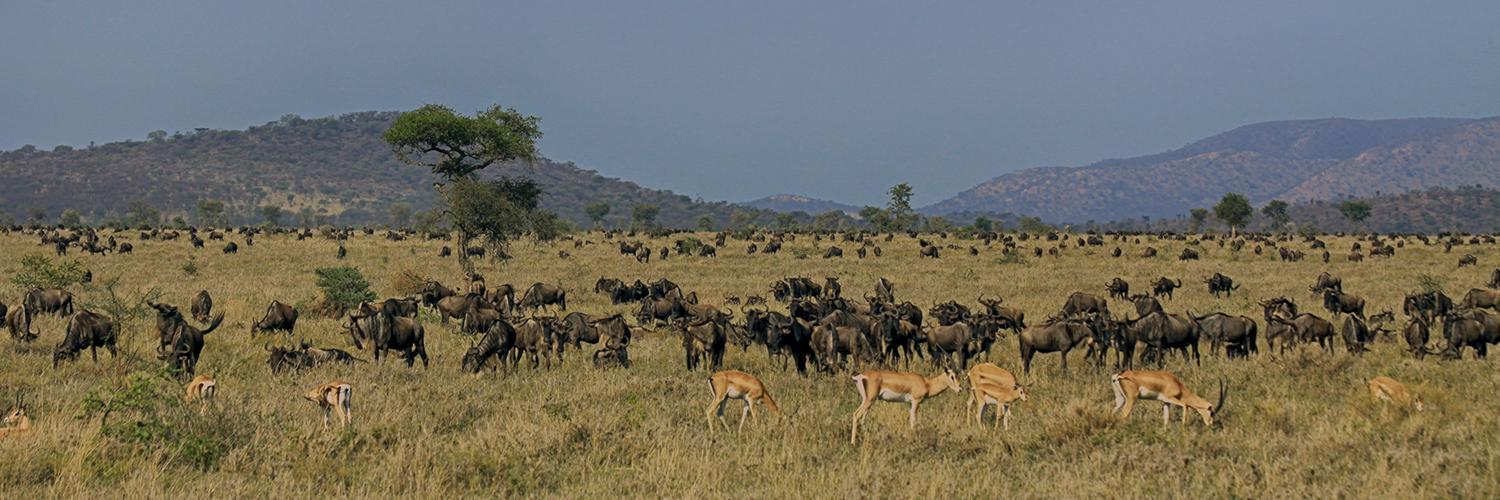 Vom Kilimanjaro aus führt unsere Tansania Safari in die Serengeti. Die weite Savanne ist ein Paradies für Gnus und Zebras.